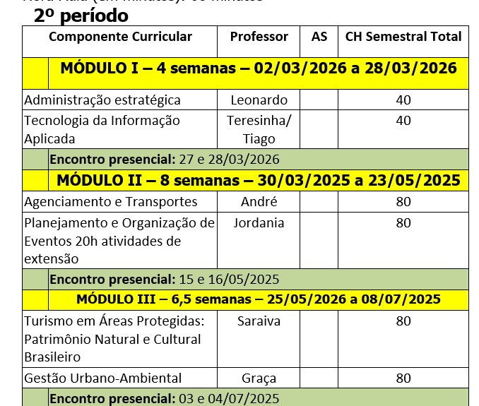 Gestão de Turismo EAD: Módulos 2026.1 - 2ºperíodo
