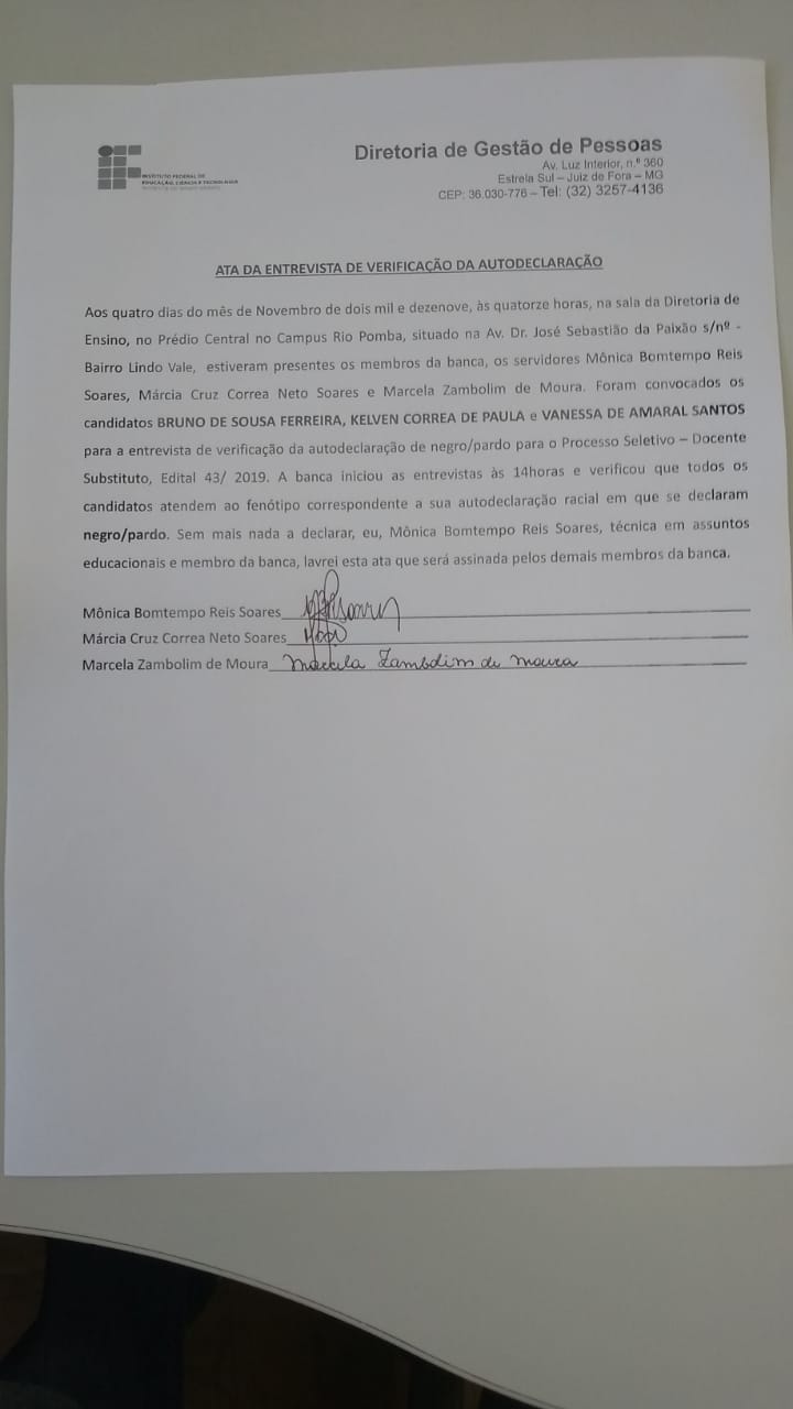 Cotas Raciais (convocação para entrevista, resultado e recurso)