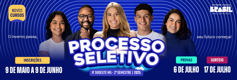 O Instituto Federal do Sudeste de Minas Gerais é uma instituição pública e gratuita, que oferece cursos em diferentes níveis e modalidades. Somos reconhecidos com nota máxima pelo Ministério da Educação e temos campi em 10 cidades: Barbacena, Bom Sucesso, Cataguases, Juiz de Fora, Manhuaçu, Muriaé, Rio Pomba, São João del-Rei, Santos Dumont e Ubá.