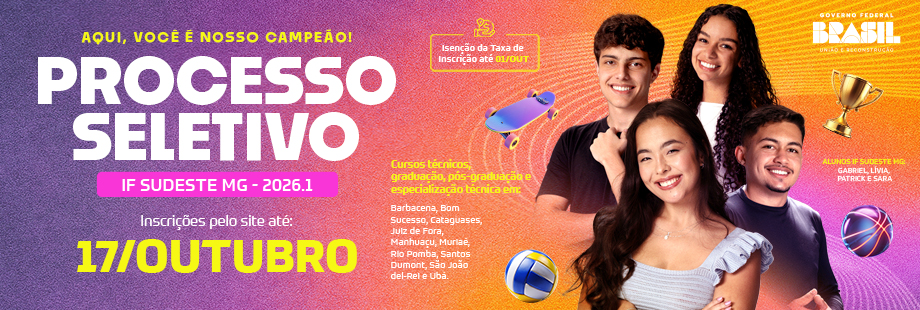 Rodovia MGT 265, KM 83, R. Ubá, S/Nº - Horto Florestal, Área Rural de Ubá - Ubá - MG, CEP: 36508-899 | Das 14:00 às 19:00 secretaria.uba@ifsudestemg.edu.br Telefone: (32) 99844-5749 |
