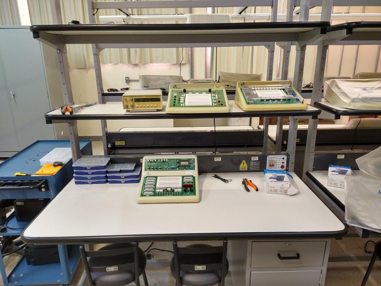 O laboratório permite a realização de aulas práticas das disciplinas de Eletrônica Analógica, Eletrônica Digital, Medidas Elétricas, Eletromagnetismo, Eletrotécnica, Circuitos CC e Circuitos CA.