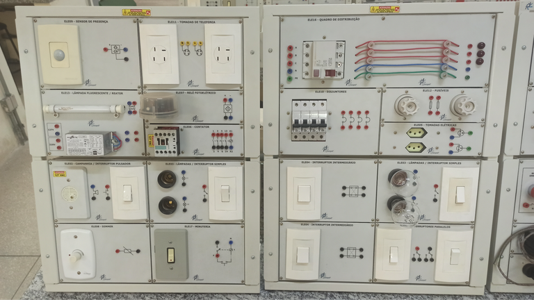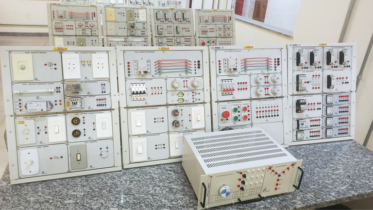 O Laboratório de Instalações Elétricas é equipado com módulos de instalações elétricas residenciais e prediais e instalações industriais, proporcionando o contato direto com os mais variados dispositivos elétricos. Entre eles: