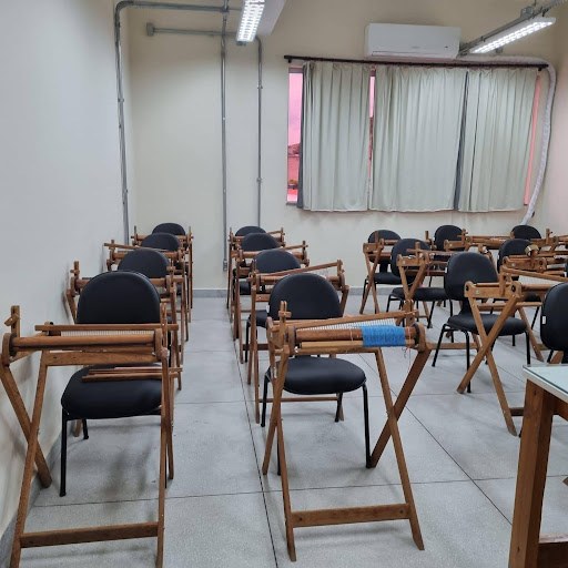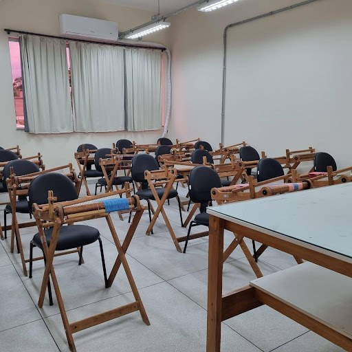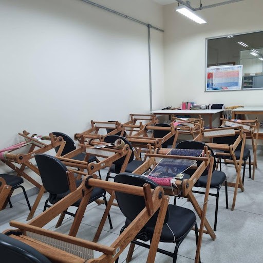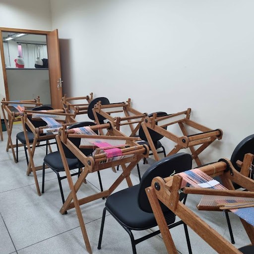 O laboratório fornece teares para o desenvolvimento de atividade de tecimento de tecido.