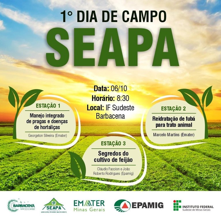 No dia 05 de outubro, no IF Sudeste MG - Campus Barbacena, às 08h30, ocorrerá o 1º Dia de Campo SEAPA.