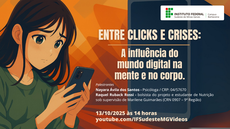 Na segunda-feira, dia 13/10, às 14h, no Canal do Youtube do IF Sudeste MG, ocorrerá a palestra Entre clicks e crises: A influência do mundo digital na mente e no corpo.