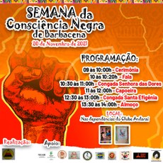 O Conselho de Promoção da Igualdade Racial de Barbacena com o apoio do IF Sudeste MG- Campus Barbacena, NEABI, LEPER, SENAC, Pastoral Afro, grupos de capoeira e congadas realizará entre os dia 17 e 20 de novembro atividades de comemoração ao dia da Consciência Negra. Confira a programação: