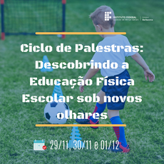 O curso de Licenciatura em Educação Física do IF Sudeste MG- Campus Barbacena, realizará entre nos dias 29, 30/11 e 1º/12/2021 o I CICLO DE PALESTRAS “DESCOBRINDO A EDUCAÇÃO FÍSICA ESCOLAR SOB NOVOS OLHARES”.