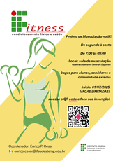 As aulas são na Sala de Musculação do Campus Barbacena (Quadra Coberta no Setor de Esportes) e terão início no dia 01/07/2025.