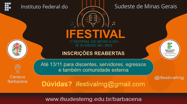 Estão reabertas as inscrições para o 1° Festival de Música do IF Sudeste MG – IFestival 2023