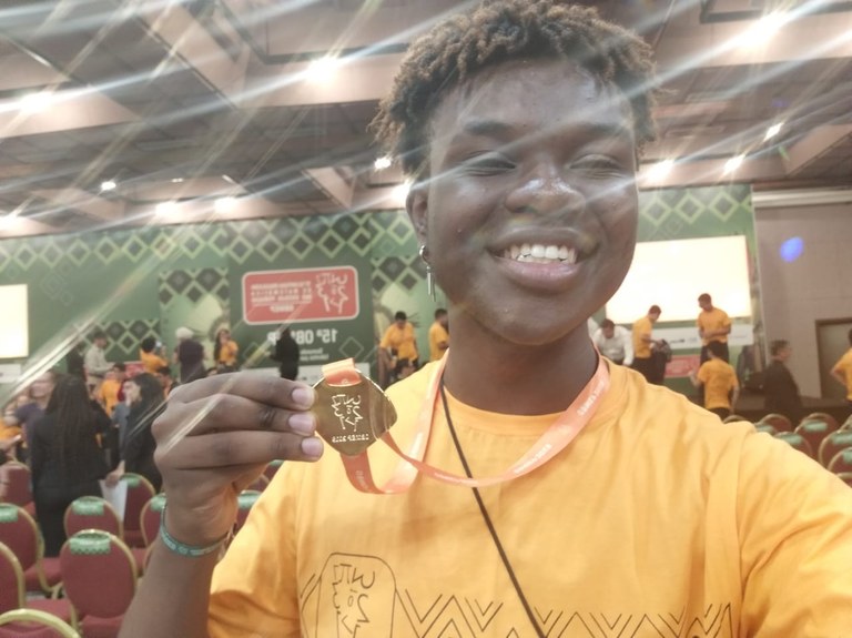 O estudante Bruno Henrique Militino da Silva do 3º ano do Curso Técnico em Química Integrado ao Ensino Médio recebeu a medalha de ouro na 15ª OBMEP.