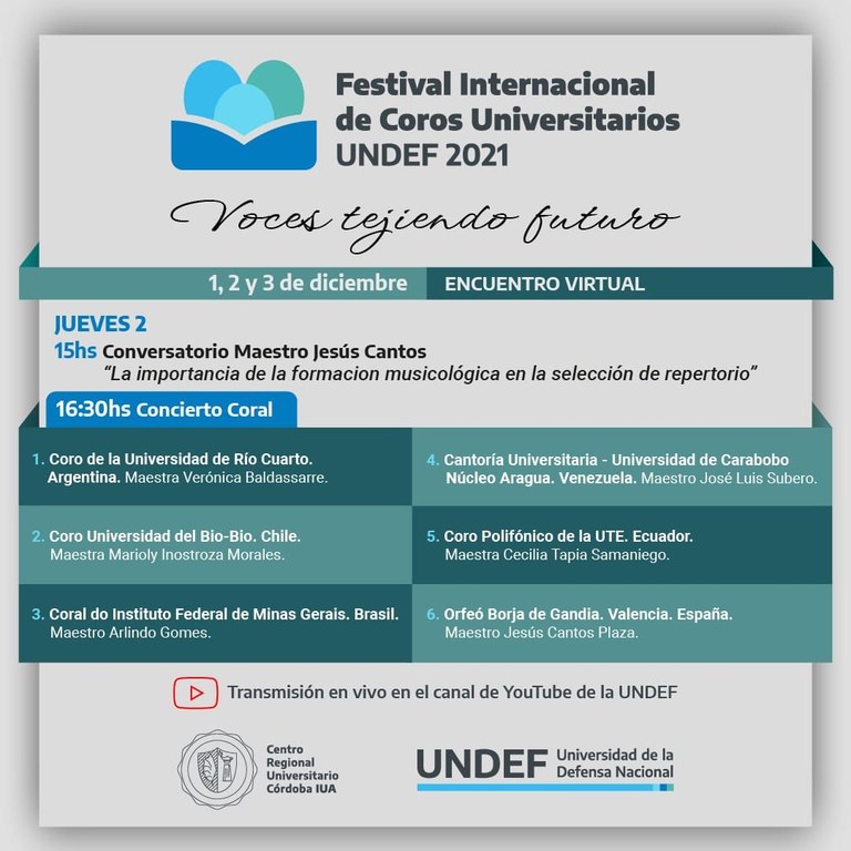 Festival Internacional de Coros Universitários 2021, na Argentina, terá participação do Coral do Campus Barbacena.