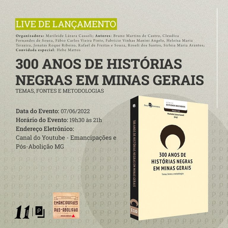 O capítulo foi escrito pelos professores Sirleia Maria Arantes, Rafael de Freitas e Souza e Roseli dos Santos. O lançamento do livro será dia 07/06, às 19h30, no canal do YouTube Emancipações e Pós-abolição em Minas Gerais.