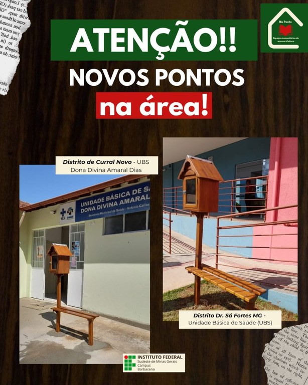 O projeto de extensão do Campus Barbacena possui 10 pontos de leitura." Aproveite esses espaços e mergulhe na leitura! Te vemos "No Ponto"!"