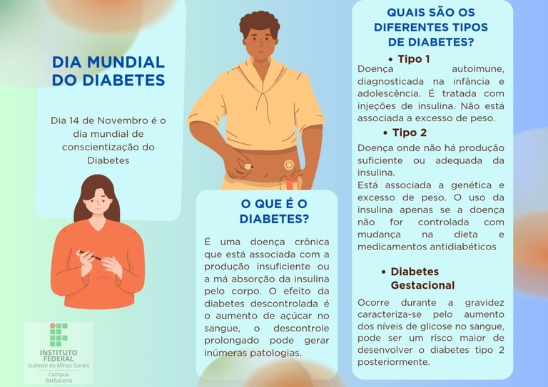 O projeto de pesquisa do Campus Barbacena denominado "Impacto do Trabalho na saúde mental do Trabalhador: a depressão e a ansiedade como resposta subjetiva ?" divulgou uma campanha sobre o "Dia Nacional e Mundial do Diabetes".