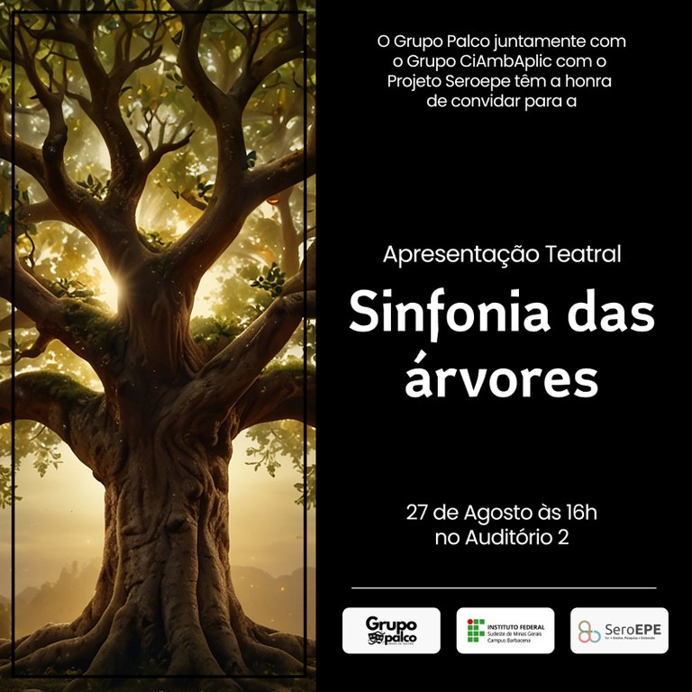 Projeto Seroepe: Grupo Palco e Grupo de Ciências Ambientais Aplicadas do IF Sudeste MG - Campus Barbacena convidam para apresentação teatral "Sinfonia da árvores"