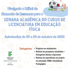 Publicado Edital de chamada para submissão de resumos para a Semana Acadêmica do Curso de Licenciatura em Educação Física do Campus Barbacena