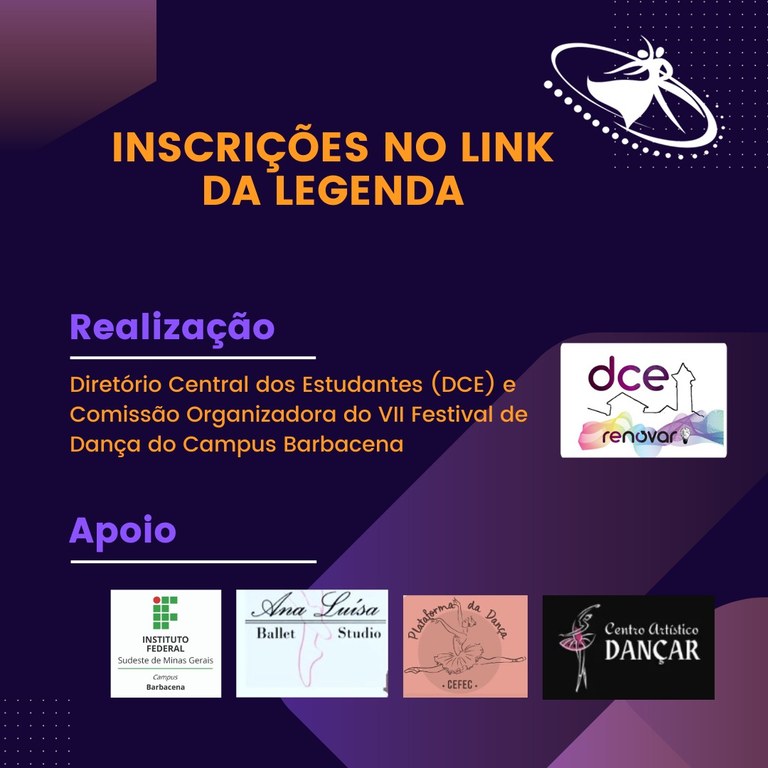 No ano de 2023, o VII Festival de Dança do IF Sudeste MG - Campus Barbacena vem com mais uma novidade. As juradas do VII Festival de Dança irão ministrar aulas abertas para os interessados.
