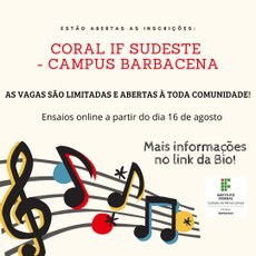 O Coral do Campus Barbacena existe desde o ano de 2019 e é regido pelo Maestro Arlindo Leandro Gomes (licenciado em música e discente do curso de Licenciatura em Educação Física).