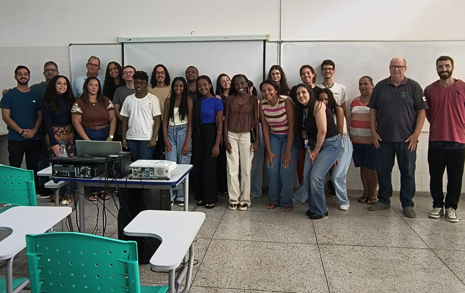 Participantes, professores e convidados reunidos ao final do Startup Day 2026 no IF Sudeste MG Campus Cataguases.