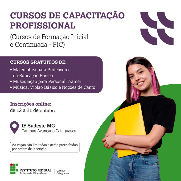 Abertas as inscrições para cursos profissionalizantes nas áreas de Música, Matemática e Educação Física