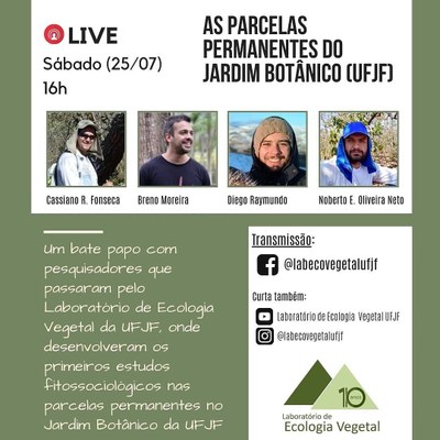 Também participam do encontro virtual os pesquisadores Breno Moreira, Diego Raymundo e Norberto Oliveira Neto, todos eles integrantes do Laboratório de Ecologia Vegetal da Universidade Federal de Juiz de Fora. Os interessados podem acompanhar a conversa acessando a página oficial @labecovegetalufjf no Facebook e no Instagram.