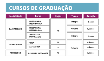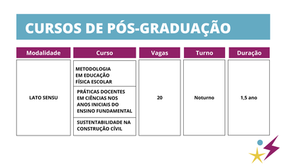 Já para os cursos de pós-graduação, a seleção será feita por meio de análise de currículo, avaliação de plano de trabalho e carta de intenção.
