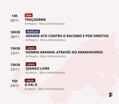Além das projeções cinematográficas, a Semana Negra também reserva espaço para a expressão musical. Na segunda-feira, dia 20/11, o Show do Coletivo Independente "Traçadàwa" acontecerá às 14h no Anfiteatro do Bloco Administrativo, oferecendo uma experiência sonora única aos participantes.