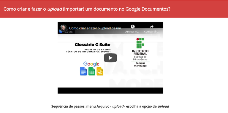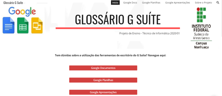 Ddenominada “Glossário G Suíte”, a ferramenta foi construída para treinar servidores na utilização de algumas funcionalidades do Google Suíte.