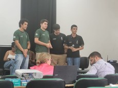 Os estudantes Daniel de Souza Carvalho, Gustavo Júlio Costa Coelho, Pedro Augusto Morais Carvalho e Rômulo Rodrigues Pereira apresentaram os resultados do trabalho denominado “Métodos de criptografia de chave pública”, coordenado pelo professor Carlos Alberto Salazar Mercado.