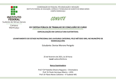 Nesta quinta-feira, 25, às 18 horas, de forma virtual, acontece a 1ª defesa de Trabalho de Conclusão de Curso (TCC) da Pós-Graduação Lato Sensu em Cafeicultura Sustentável do IF Sudeste MG - Campus Manhuaçu.