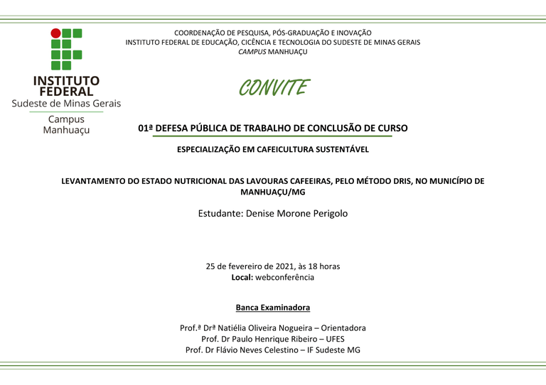 Acontece hoje a 1ª Defesa da Especialização em Cafeicultura Sustentável