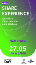 No próximo dia 27, às 14 horas, o Sebrae promoverá o Share Experience: Desafios e Oportunidades para Startups. O evento, produzido em parceria com o IF Sudeste MG, abordará aspectos sobre os desafios e dificuldades para startups, e contará com a presença de três CEOs de startups de Juiz de Fora: