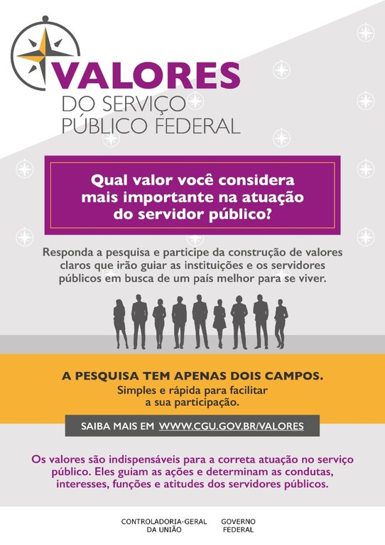 A Unidade de Integridade Pública do IF Sudeste MG comunica que a CGU lançou, com o apoio da OCDE, o projeto Valores do Serviço Público Federal.