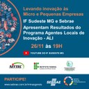 O IF Sudeste MG e o Sebrae apresentarão os resultados do Programa Agentes Locais de Inovação (ALI), que visa levar a inovação às micro e pequenas empresas da região.