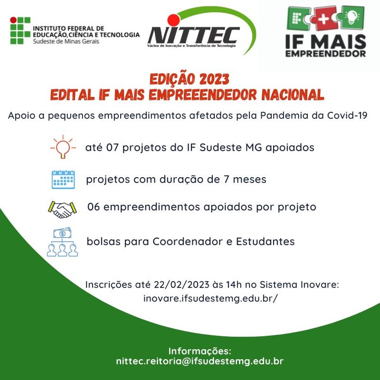 Programa IF Mais Empreendedor seleciona projetos - Edição 2023