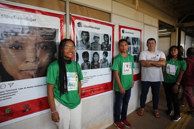 “E se os povos da floresta tivessem Instagram?”. A pergunta formulada pelo professor Paulo Nascimento e os estudantes do curso técnico em Informática integrado Anne Asan, Nataly Bilhar e Miguel Fragoso, do Campus Iranduba do Instituto Federal do Amazonas (Ifam), também deu título ao projeto apresentado por eles no primeiro dia do VII Enneabi. A ideia foi levar a banners impressos uma exposição de fotos de Andujar no layout de postagens na rede social.