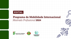 O Programa de Mobilidade Internacional do IF Sudeste MG - Mestrado Profissional 2024 é uma iniciativa de mobilidade internacional emissiva, por meio da qual alunos dos cursos de mestrado profissional ofertados por esta instituição realizarão uma parte de suas pesquisas em desenvolvimento no Instituto Politécnico de Bragança (IPB). As atividades deverão ser apresentadas em um Plano de Trabalho pré-aprovado pelo(a) orientador(a), e deverão ser obrigatoriamente vinculadas ao seu projeto de pesquisa e aprovadas no IPB.