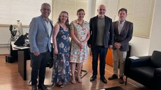 O IF Sudeste MG e o Conselho Federal de Enfermagem (Cofen) estão em fase final de negociação para formalizarem uma parceria inédita. No dia 18 de fevereiro, representantes de ambas as organizações reuniram-se na Reitoria da instituição, em Juiz de Fora (MG), com o objetivo de somarem forças e viabilizarem a oferta de cursos a distância, pelo IF Sudeste MG, para profissionais inscritos no Conselho. Na ocasião, estiveram presentes a diretora de Extensão, Pesquisa, Inovação e Pós-Graduação do Campus São João del-Rei, Isabel Schiavon, a diretora-geral deste mesmo Campus, Teresinha Moreira de Magalhães, o reitor do IF Sudeste MG, André Diniz, além do chefe de Educação Corporativa do Cofen, Ronaldo Freire Ramos, e o assessor técnico do Conselho, Sérgio Dias Martuchi.
