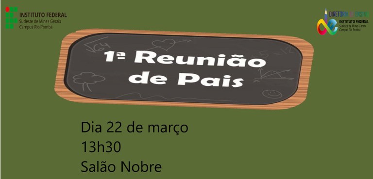 Pais e/ou responsáveis pelos estudantes dos primeiros anos dos cursos técnicos integrados estão convidados para a reunião, que acontece, às 13h30, no Salão Nobre.