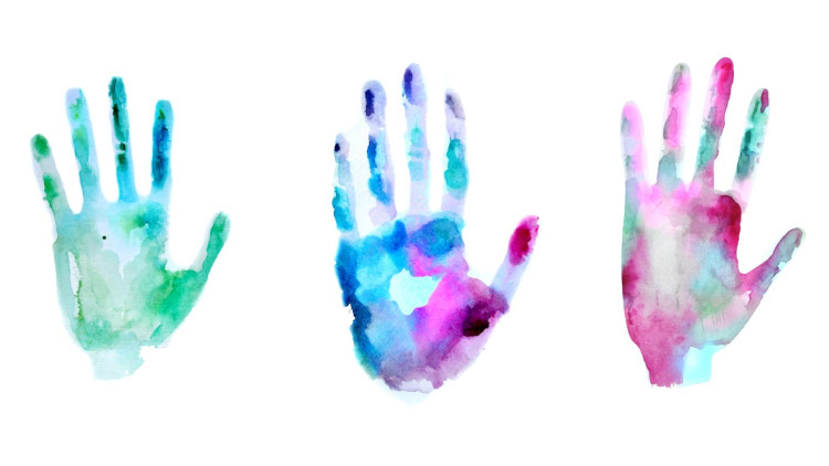 #Pratodosverem: três mãos coloridas em tons de verde, azul e rosa.
