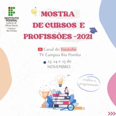 Pensando nos futuros estudantes do IF Sudeste MG, nos dias 23, 24 e 25 de novembro, o Campus Rio Pomba apresenta à comunidade externa todos os cursos e trabalhos desenvolvidos dentro da instituição. Trata-se da Mostra de Cursos e Profissões do Campus Rio Pomba, evento online a ser transmitido pelo canal TV Campus Rio Pomba no Youtube, com a participação de servidores ligados aos cursos e também às formas de ingresso na instituição.