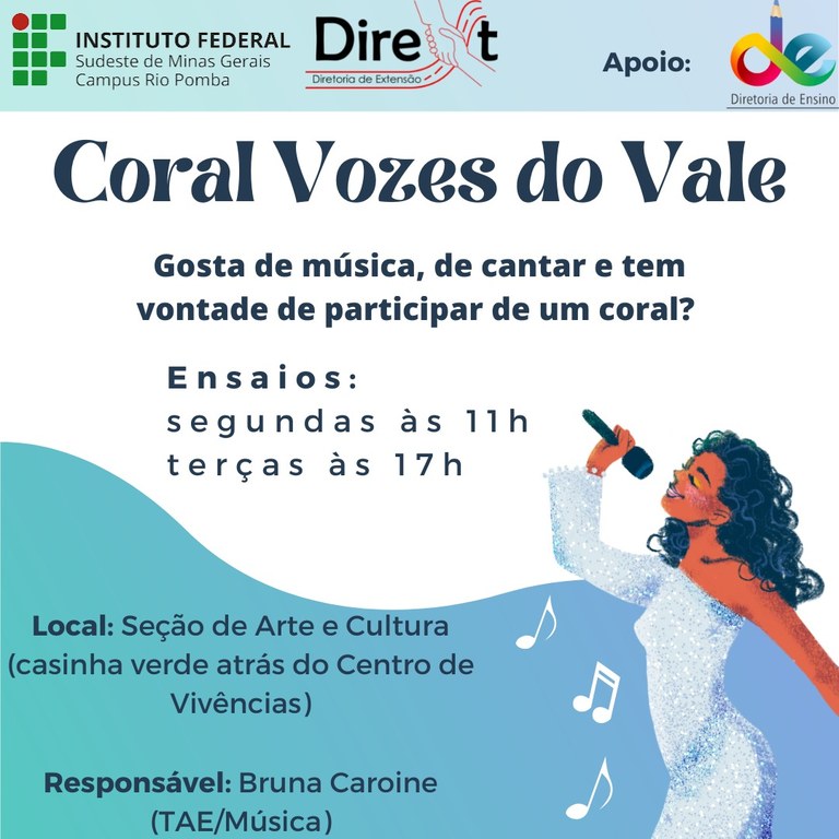 Aulas de música e coral são oferecidos aos estudantes do campus Rio Pomba