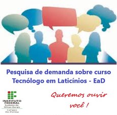 De acordo com a docente, Fabiana de Oliveira Martins, membro da Comissão, é importante ouvir não só os estudantes, mas os ex-alunos, formados nos cursos de Laticínios (Tecnólogo e Bacharelado) no IF Sudeste MG, Campus Rio Pomba. " A opinião deles é muito importante para o processo de concepção de uma nova proposta para um curso na modalidade a distância. Os resultados também poderão ser utilizados para implantarmos melhorias em nossos cursos presenciais. Desse modo, pretendemos proporcionar uma melhor formação e uma oferta de profissionais que atendam as demandas atuais do mercado", completa.Os profissionais que atuam na área também podem responder à pesquisa. " Vamos elaborar um Projeto ouvindo também o que as pessoas atuantes no setor lácteo têm a nos dizer sobre a demanda para a oferta de um curso nesta modalidade e sobre o perfil do profissional necessário aos tempos atuais. Para estes, elaboramos um questionário e gostaríamos muito da opinião de quem atua na área de laticínios (no campo, na indústria, em pesquisa e desenvolvimento, nos órgãos reguladores, em associações e sindicatos do setor, ou em outro segmento relacionado diretamente com atuação do profissional de laticínios)", explica Fabiana.