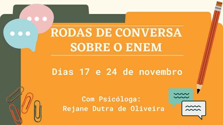 Tá ansioso com a aproximação das provas do Enem? Conversar pode ajudar! Participe das Rodas de Conversa sobre o assunto. Saiba mais!