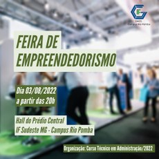 A Feira de Empreendedorismo acontece no dia 03 de agosto, a partir das 20h, no hall de entrada do prédio central do campus Rio Pomba.