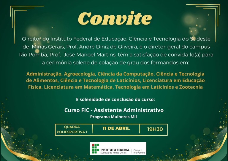 Campus Rio Pomba realiza solenidades de conclusão de cursos e colação de grau