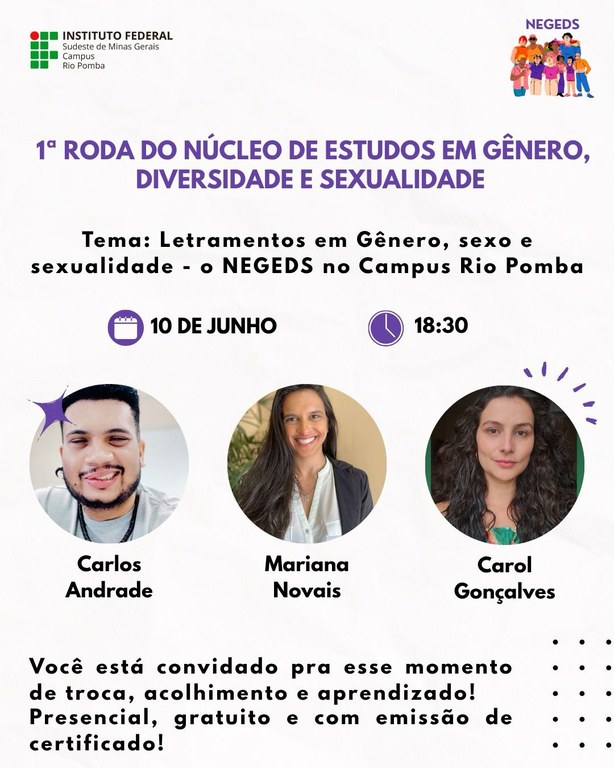 Campus Rio Pomba terá Roda de Conversa sobre "Letramentos em gênero, sexo e sexualidade"
