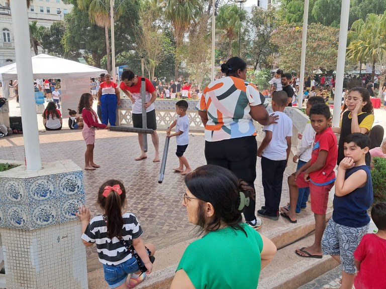 Educação Física promove atividades recreativas na praça central de Rio Pomba