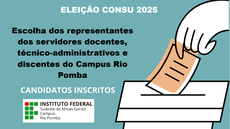 A Comissão Eleitoral Local divulga os candidatos inscritos para o processo eleitoral de escolha dos representantes do campus Rio Pomba, nos segmentos docente, técnico administrativo e discente, no Conselho Superior (CONSU).