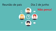 Será realizada no dia 02 de junho, quarta-feira, às 19h, on-line, a primeira Reunião de Pais dos alunos dos primeiros anos dos cursos técnicos integrados.